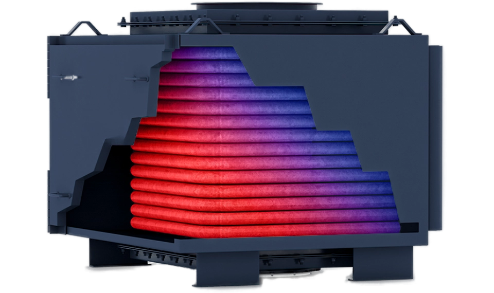 SRE Series is a high-efficiency condensing economizer designed to capture latent and sensible heat from flue gas to maximize overall boiler system efficiency. Installed directly in the stack, it uses corrosion-resistant stainless steel heat transfer surfaces and is ideal for systems firing natural gas or propane. SRE units recover exhaust heat to preheat make-up water or process fluids, increasing thermal efficiency by up to 10% or more. With a compact vertical configuration and optional stainless steel condensate neutralization, it’s well-suited for both retrofit and new steam or hot water boiler systems.