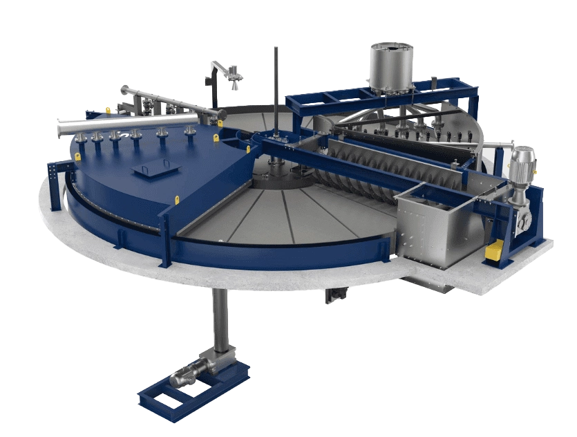Ideal for granular materials and low-viscosity slurries, these filters achieve high filtration rates per square meterwhile minimizing operating and capital costs. The rotating pan design enables uninterrupted operation — with cake forming, washing, drying, and discharge taking place in a continuous sequence.